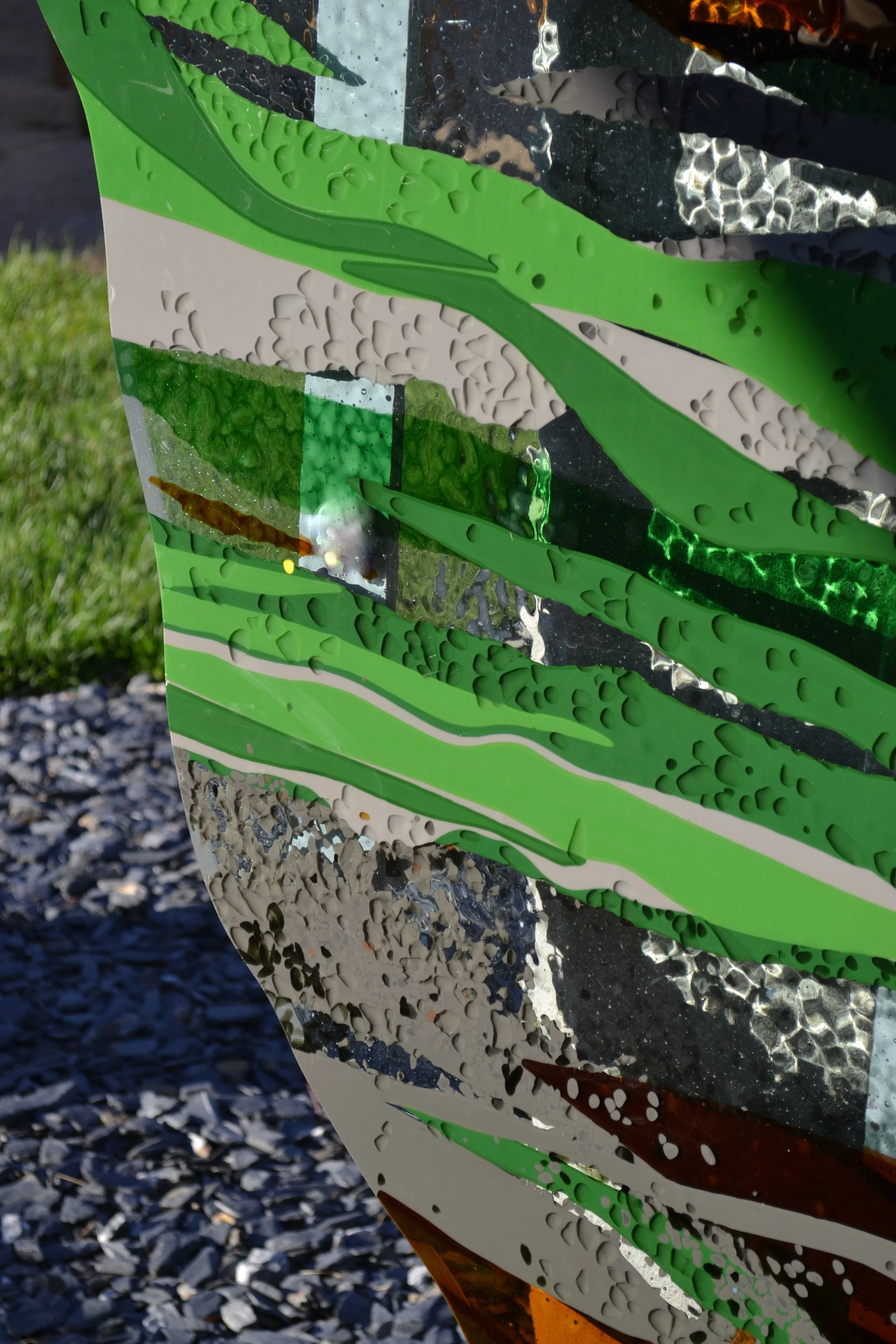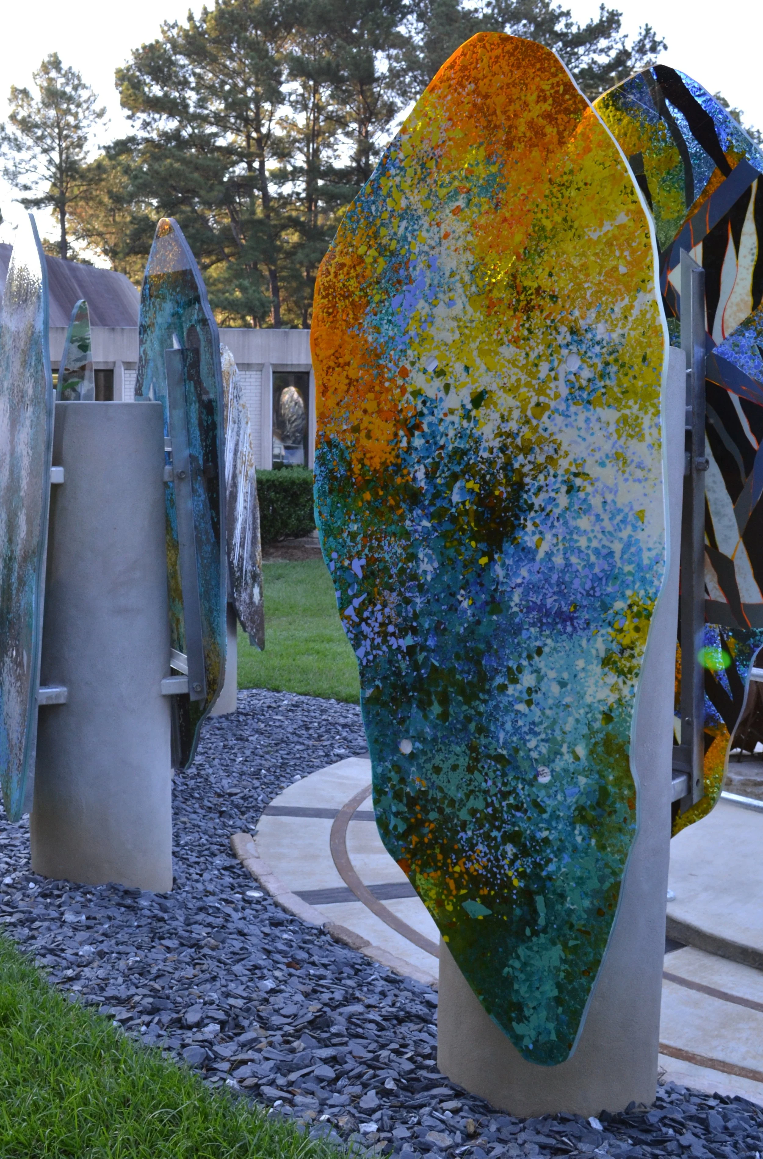 The glass used in the sculptures was crafted using advanced kiln-forming techniques, requiring meticulous precision to achieve the desired depth, texture, and color. These elements were designed not only to tell a story but to interact with light, shifting in appearance with the time of day and season—creating a dynamic, living tribute.